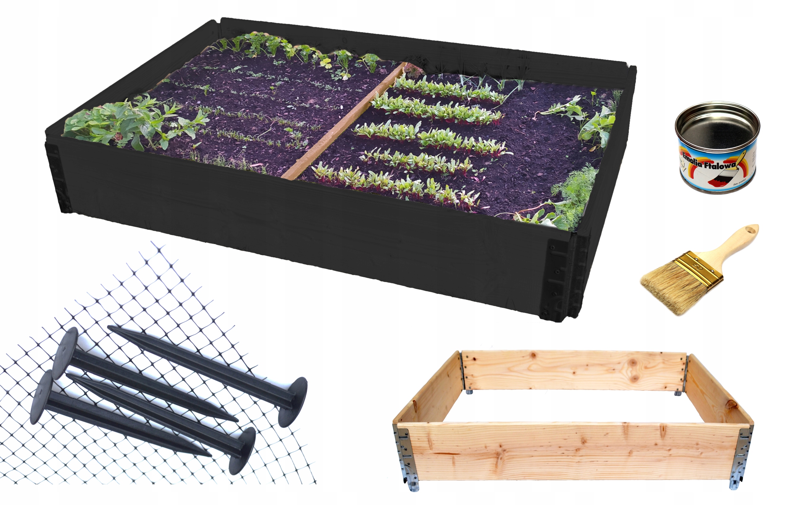 Chroń swoją grządkę przed kretami i nadaj jej estetyczny wygląd dzięki tej wyjątkowej ofercie z Allegro! Zestaw zawiera solidną siatkę zabezpieczającą przed gryzoniami, zestaw kotew do jej montażu, a także praktyczny rabat warzywniak. Dodatkowo, w zestawie znajduje się farba w kolorze grafitowym oraz pędzel do malowania, pozwalając na estetyczne wykończenie całej konstrukcji.
