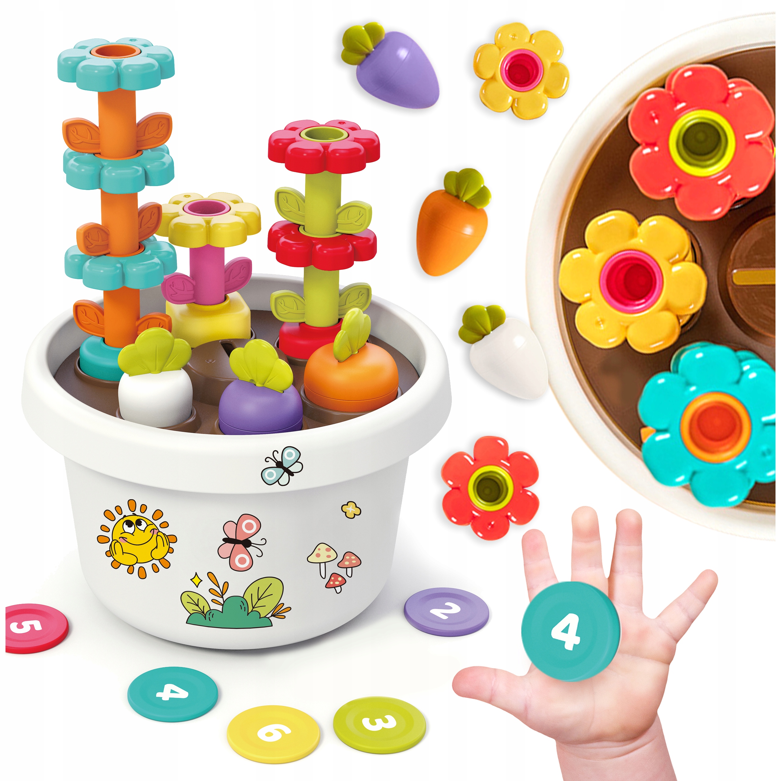 Hej, Mirki i Mirabelki! Wpadłem na super okazję na Allegro i muszę się tym podzielić! Zauważyłem fajną zabawkę dla maluchów – Hola Sorter, czyli doniczkę sensoryczną w kształcie piramidy z kwiatkami i magnesami. To świetna rzecz do rozwijania motoryki małej i koordynacji oko-ręka, a przy tym kolorowa i wciągająca! Sama piramida ma kilka elementów, a do tego dochodzą jeszcze magnesujące kwiatki – mnóstwo zabawy gwarantowane!
