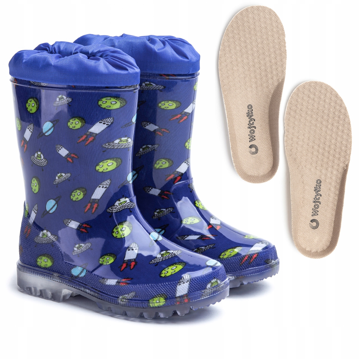 Hej, Mirki i Mirabelki! Zauważyłem na Allegro super promocję na kalosze dziecięce Wojtyłko – te z kosmicznym wzorem! W sam raz na jesienne szaleństwa w kałużach. Są mega urocze, a do tego mają wygodną wkładkę i ściągacz na kołnierzu, żeby woda nie dostawała się do środka. To naprawdę solidne gumowce, które przetrwają niejedną zabawę w błocie.