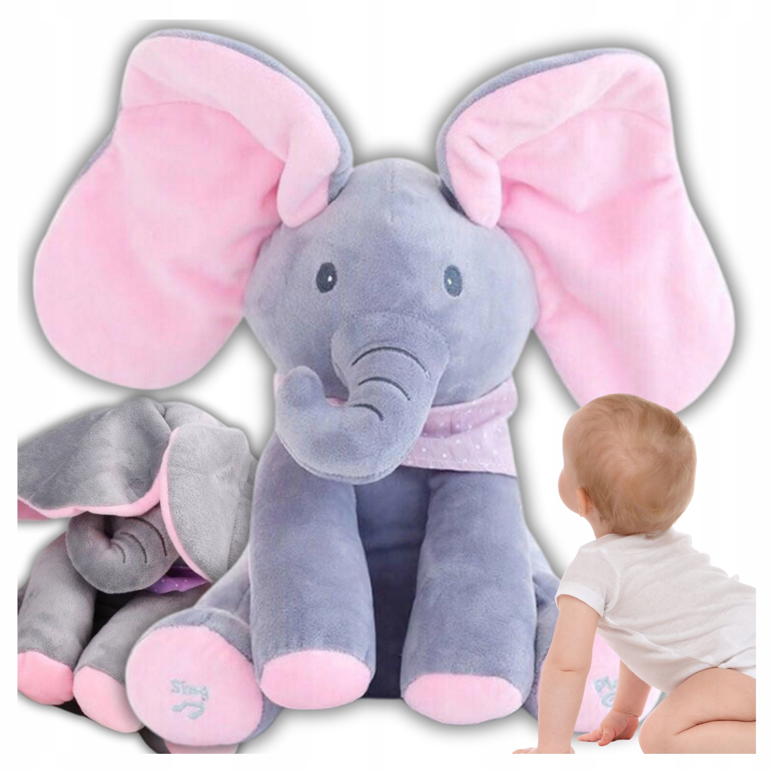 Ten słonik z pewnością rozbawi maluchy tym a kuku i ruszającymi uszami.