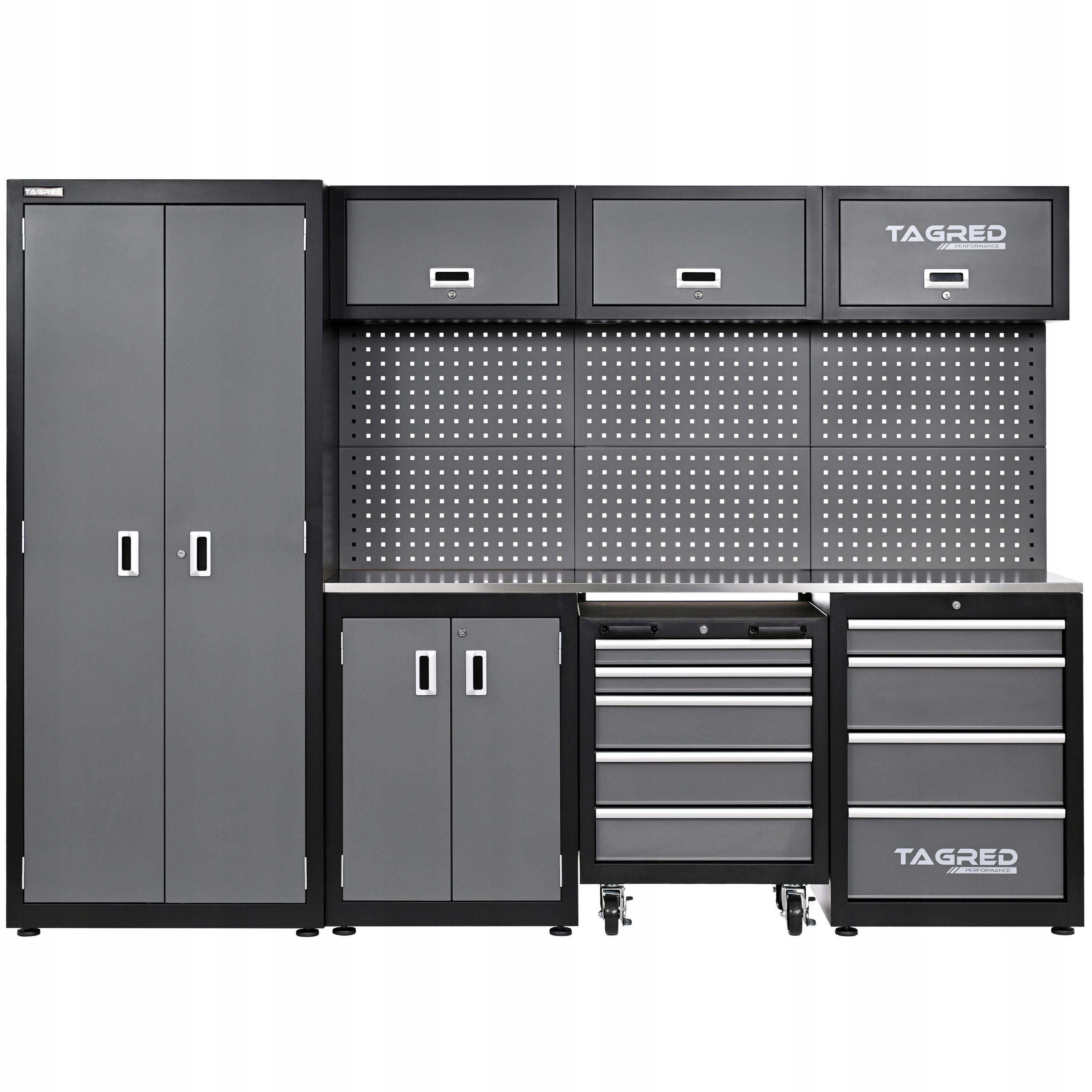 Idealny zestaw do warsztatu, zwłaszcza z tym blatem ze stali Inox, wytrzymałość gwarantowana.