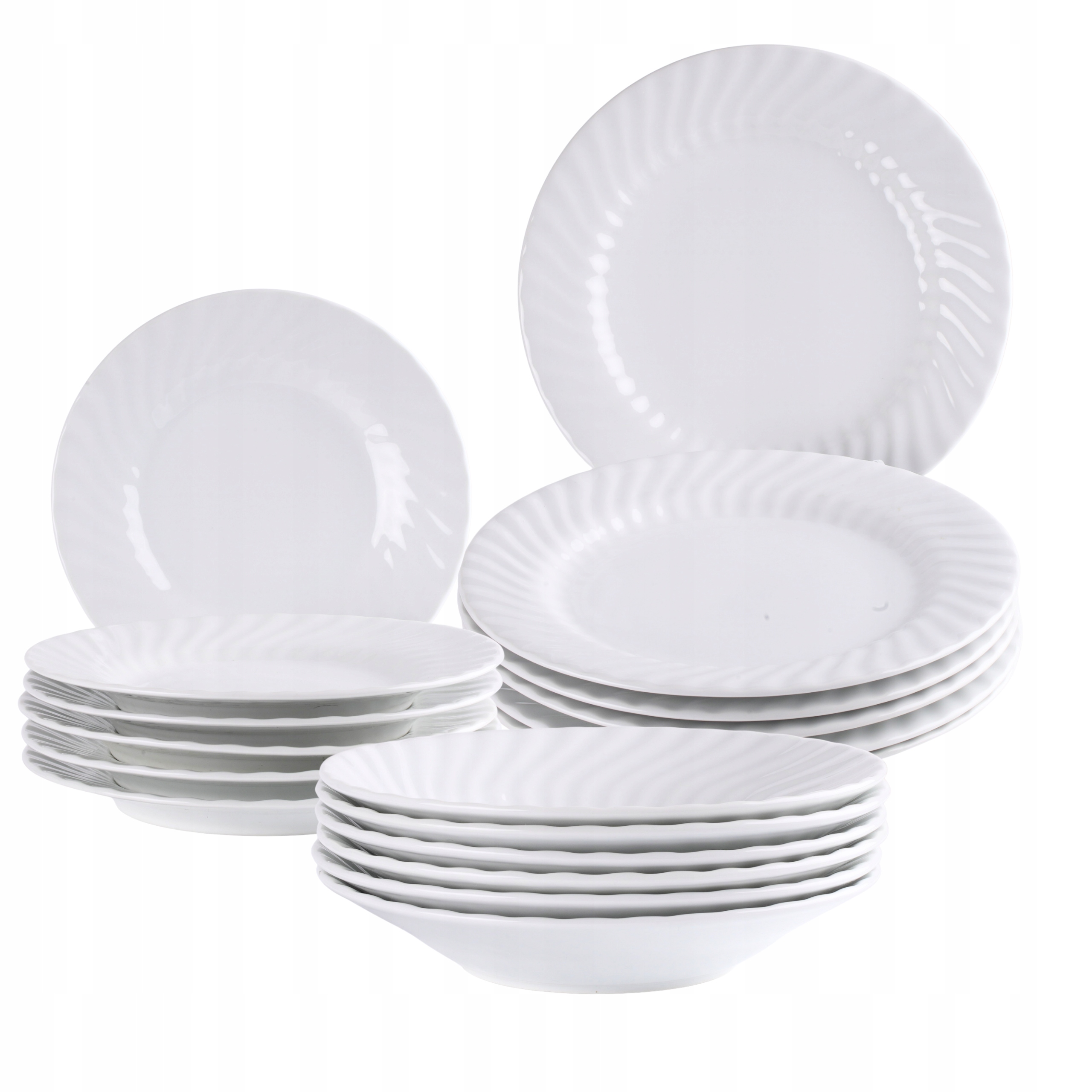 - Zawiera talerze głębokie, płaskie i deserowe.