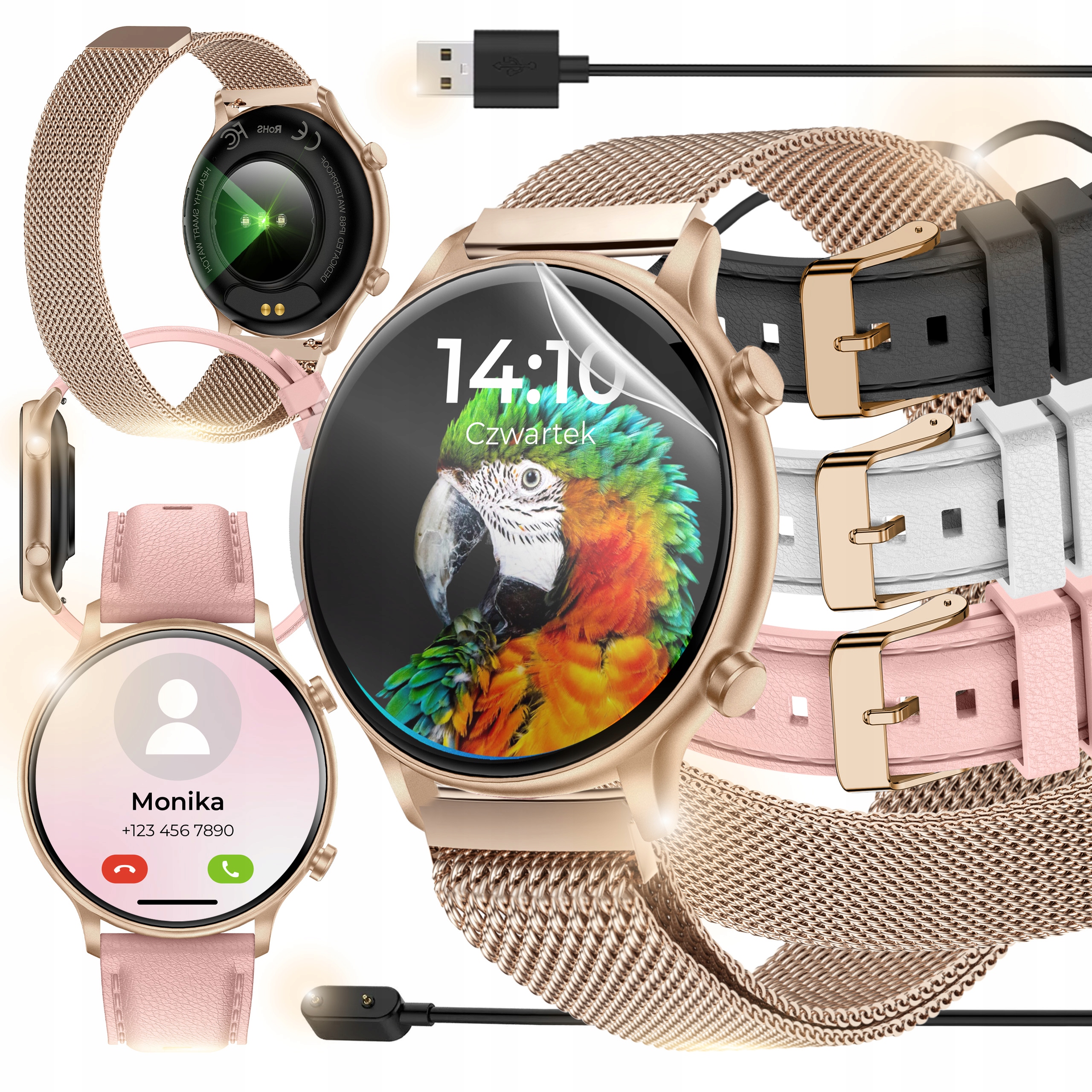- Rozmowy i Powiadomienia: Nie przegap niczego! Odbieraj połączenia i wiadomości prosto z nadgarstka.
