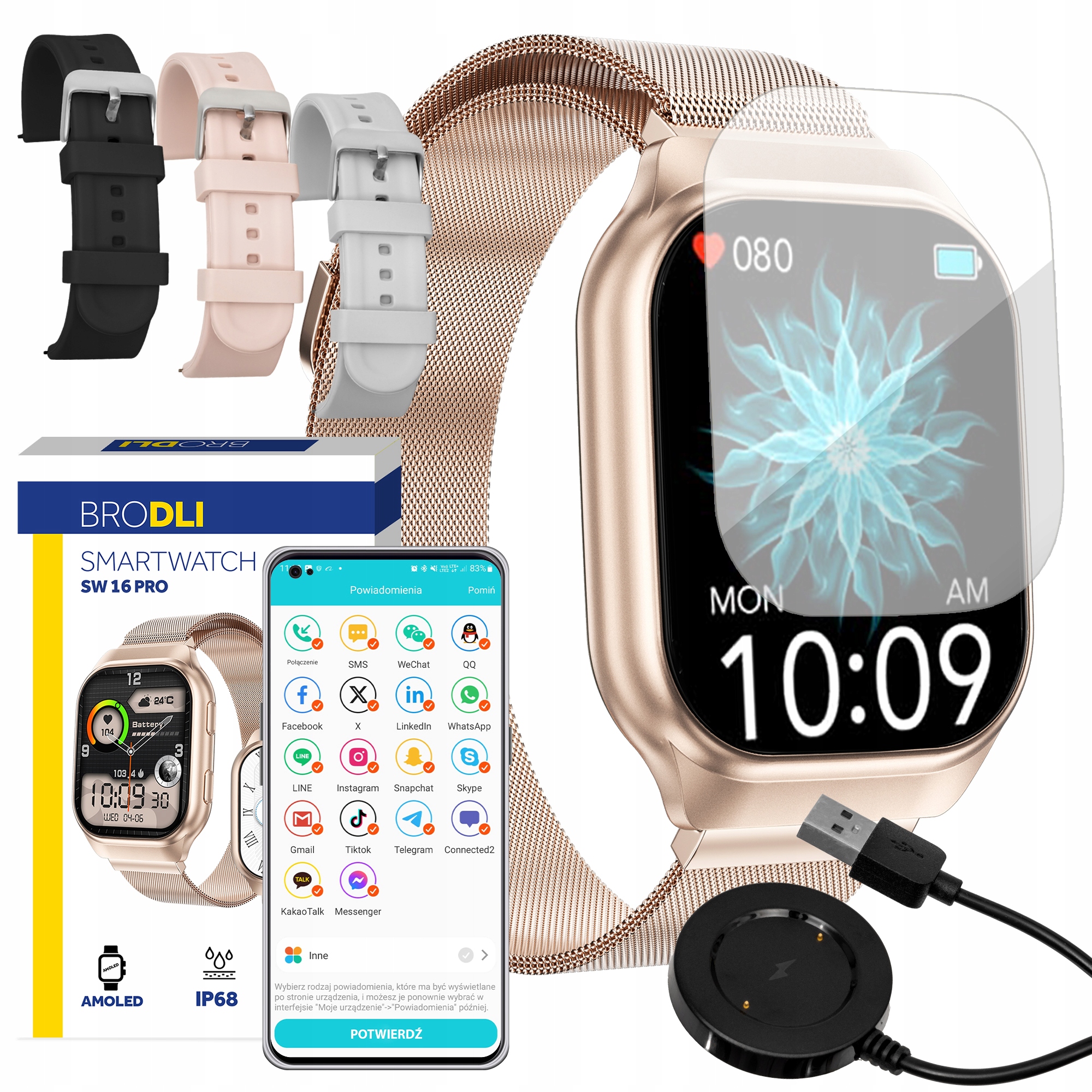 Smartwatch Zegarek Damski Pomiar Cukru Rozmowy Smart Watch Złoty 4 Paski