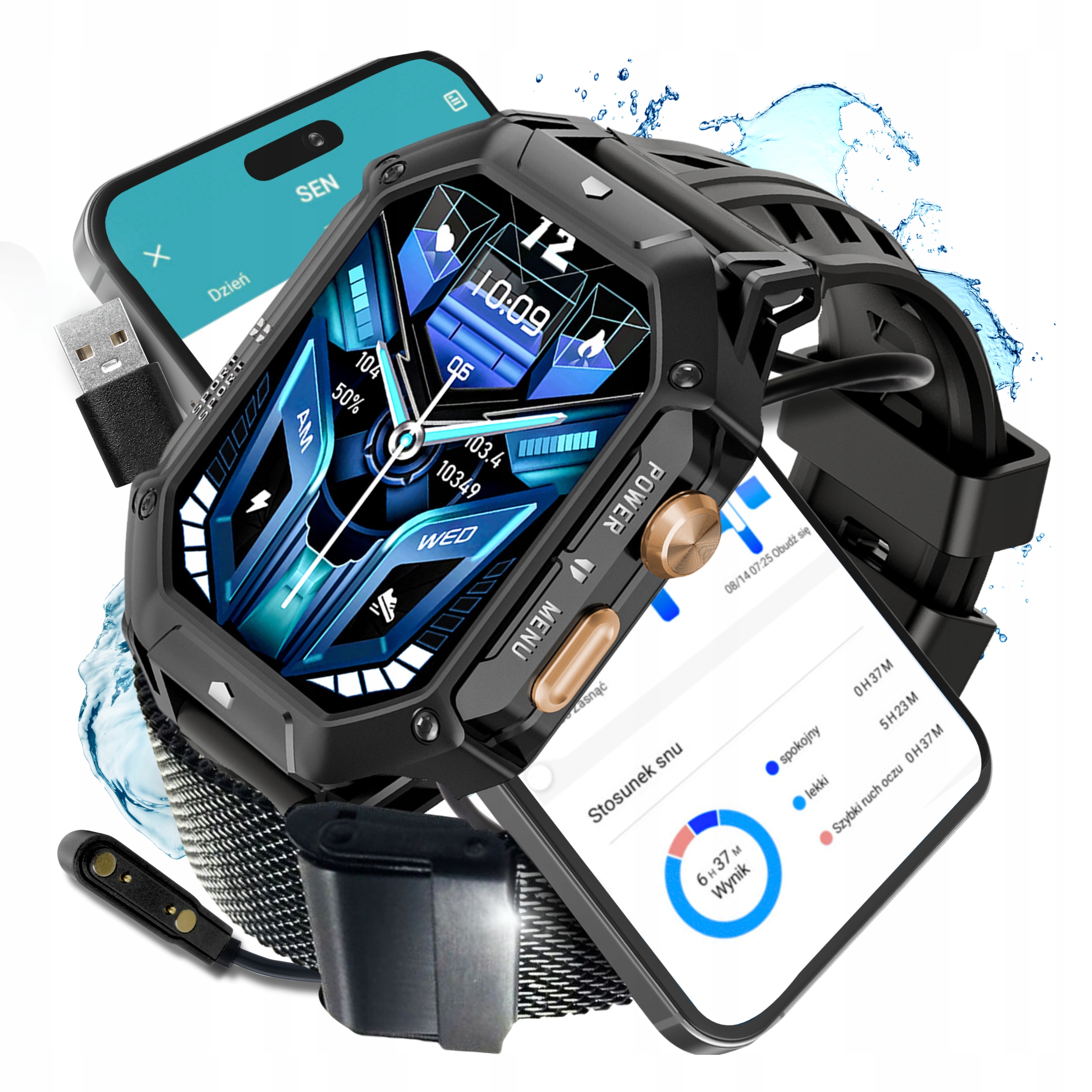 Smartwatch Zegarek Męski Wodoodporny Sportowy Pl Menu Militarny 1000mAh
