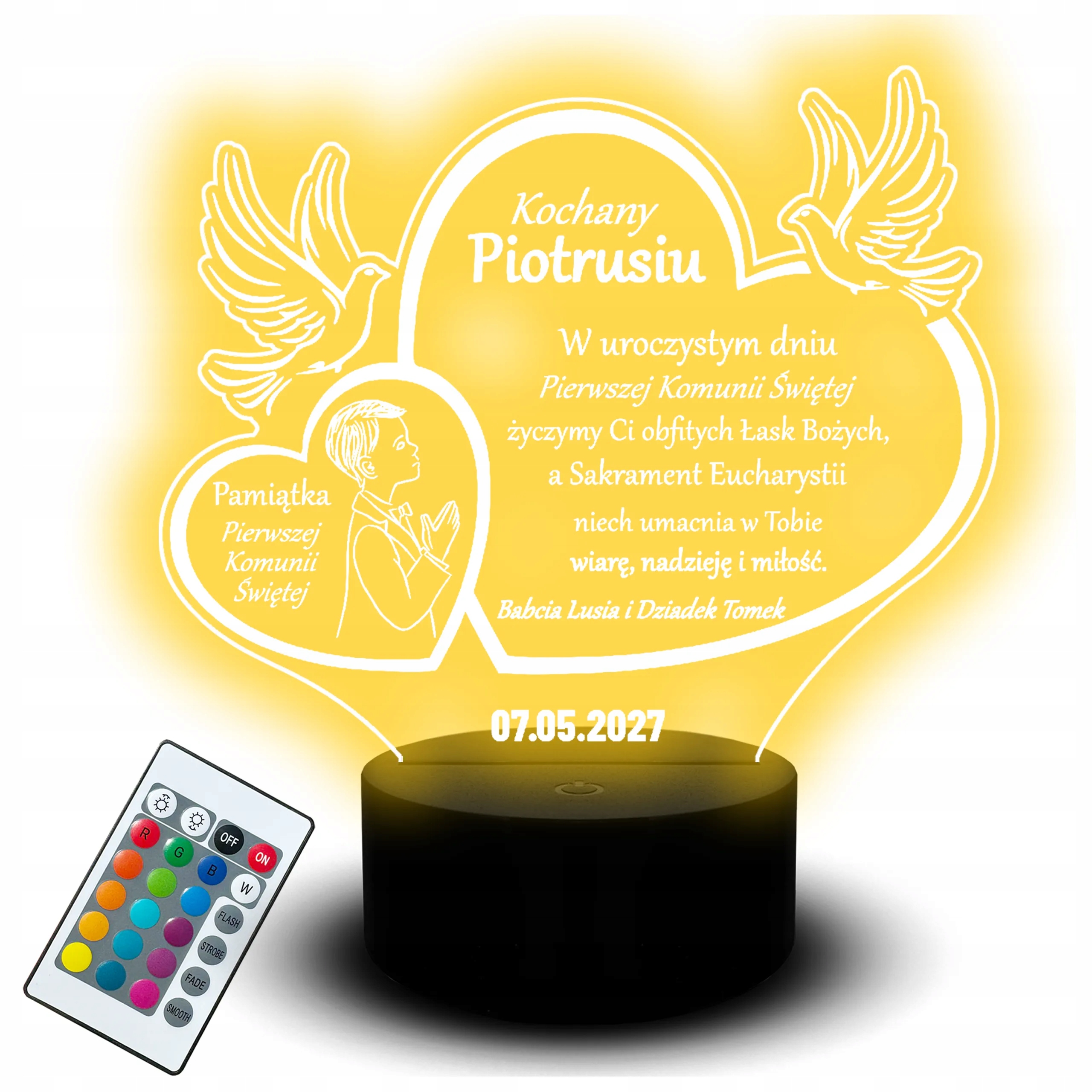Hej, Januszowcy! Wpadłem na genialną okazję na Allegro i muszę się z wami podzielić! Zauważyłem tę śliczną statuetkę-lampkę LED w kształcie Biblii, idealną na pamiątkę Pierwszej Komunii. Ma wbudowane oświetlenie LED, co dodaje jej uroku, a dodatkowo można ją spersonalizować imieniem dziecka. To naprawdę piękny i oryginalny prezent, który na pewno zostanie doceniony.