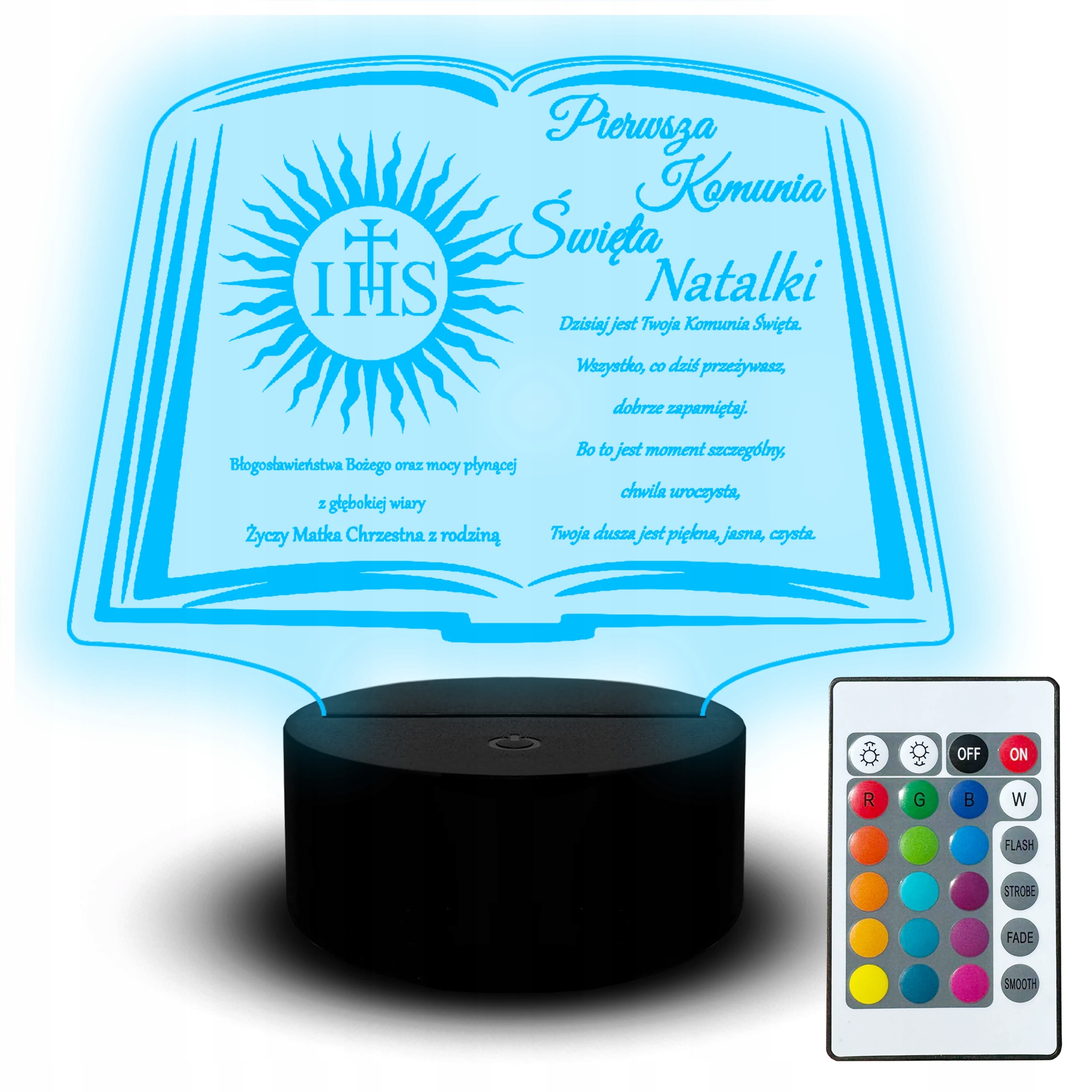 Hej, Januszowi! Wpadłem na coś super na Allegro i musiałem się tym podzielić! Zauważyłem fajną promocję na statuetkę LED z okazji Pierwszej Komunii Świętej – ma kształt Biblii, można ją spersonalizować grawerem imienia i świeci się! Myślę, że to świetny, trwały prezent, który na pewno zostanie na długo w pamięci dziecka. Sama statuetka jest ładnie wykonana, ma podświetlenie LED i prezentuje się bardzo elegancko.