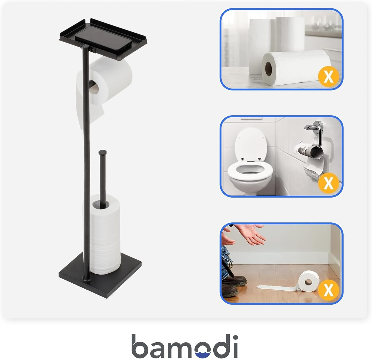 Szukasz stylowego i praktycznego uchwytu na papier toaletowy? Na Allegro znaleźliśmy dla Ciebie świetną okazję! Ten wolnostojący model w eleganckim czarnym kolorze oferuje nie tylko wygodne przechowywanie papieru, ale także dodatkową półkę, idealną na telefon, książkę lub inne drobiazgi. To doskonałe połączenie funkcjonalności i designu, które wpasuje się w każdą łazienkę.