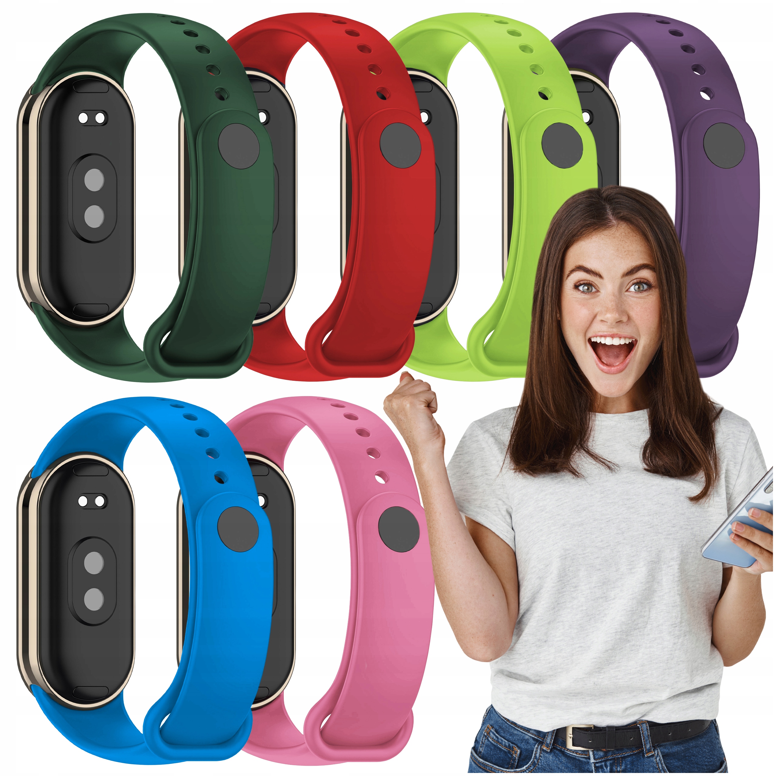 Zestaw: 6 sztuk opaska do smartband Xiaomi Mi Band 8 i Mi Band 9 pasek guma