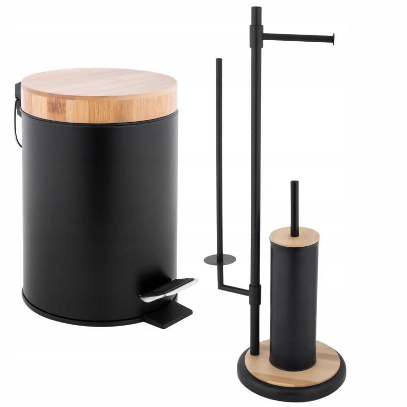 Elegancki i praktyczny zestaw łazienkowy z koszem na śmieci o pojemności 3 litrów i stojakiem na papier toaletowy, wykonany z czarnego bambusa, dostępny jest teraz w promocji na Allegro! Ten stylowy zestaw, idealny do nowoczesnych łazienek, wyróżnia się solidnym wykonaniem i naturalnym materiałem. Kompaktowy rozmiar (3L pojemność kosza) sprawia, że idealnie sprawdzi się nawet w małych pomieszczeniach.