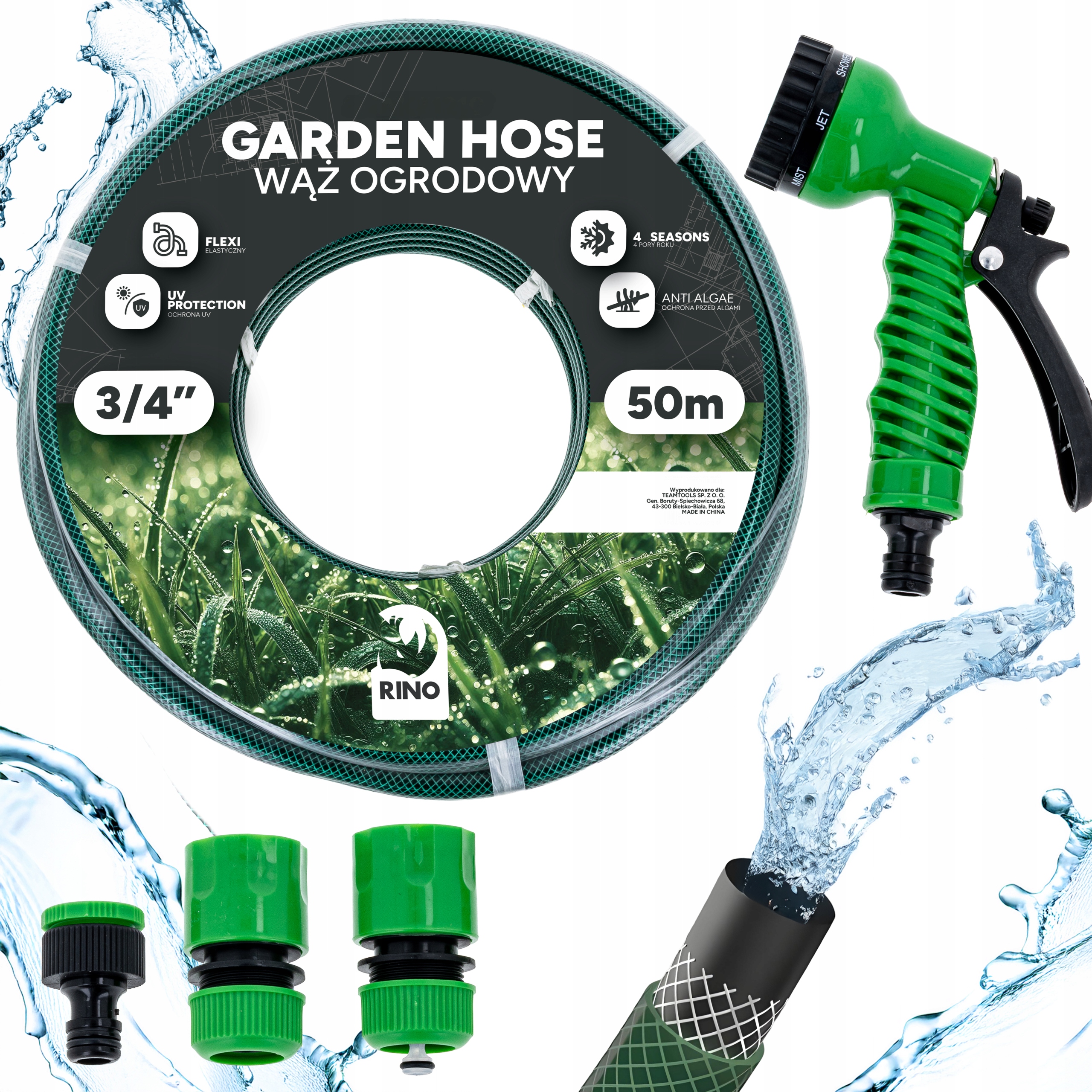 Wąż Ogrodowy 3/4" Rino Garden Do Wody 50 M Gumowy 23 Bar Pistolet Zestaw