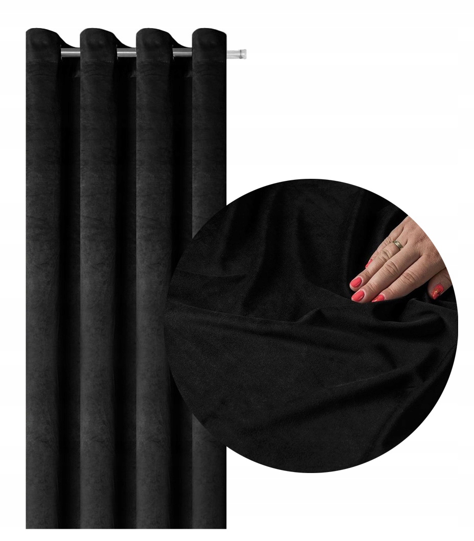 Zasłony Welurowe Gotowe 140x250 Grube na Przelotkach Czarny